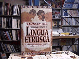 GIULIO FACCHETTI LA LINGUA DEGLI ETRUSCHI pg.295 ill. ed. Newton Compton 2000 Una nuovo volume sulla misteriosa lingua etrusca. L'autore attraverso ben 295 pagine ci illustra le varie teorie sull'origine di questa lingua di cui possediamo numerose scritte ma pochi testi di raffronto. Comunque il libro vale la pena di essere letto e forse alla fine l'autore riuscirà a convincerci che la sua non è solo un opinione... |
